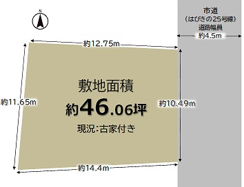 敷地は公簿で152.28㎡(約46.06坪)になります。
