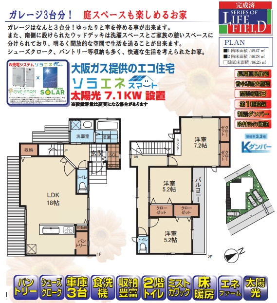 土地面積 133.59㎡(40.41坪) / 建物面積 96.25㎡ / 間取り 3LDK- 物件番号