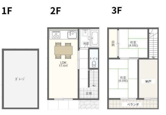 土地面積 46.45㎡(14.05坪) / 建物面積 76.00㎡ / 間取り 2LDK