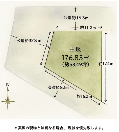 土地面積 176.83㎡(53.49坪) / 建物面積 0.00㎡ / 間取り -- 物件番号