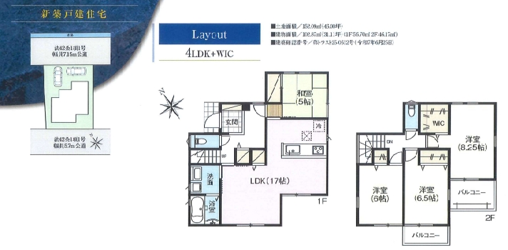 土地面積 152.09㎡(46.01坪) / 建物面積 102.87㎡ / 間取り 4LDK