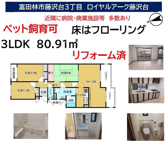 建物面積 80.91㎡ 壁心 / 間取り 3LDK- 物件番号