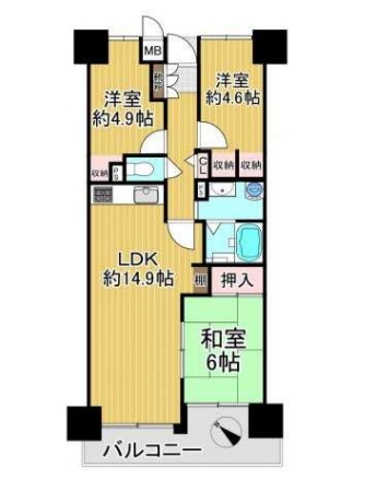 建物面積 65.81㎡ 内法 / 間取り 3LDK- 物件番号