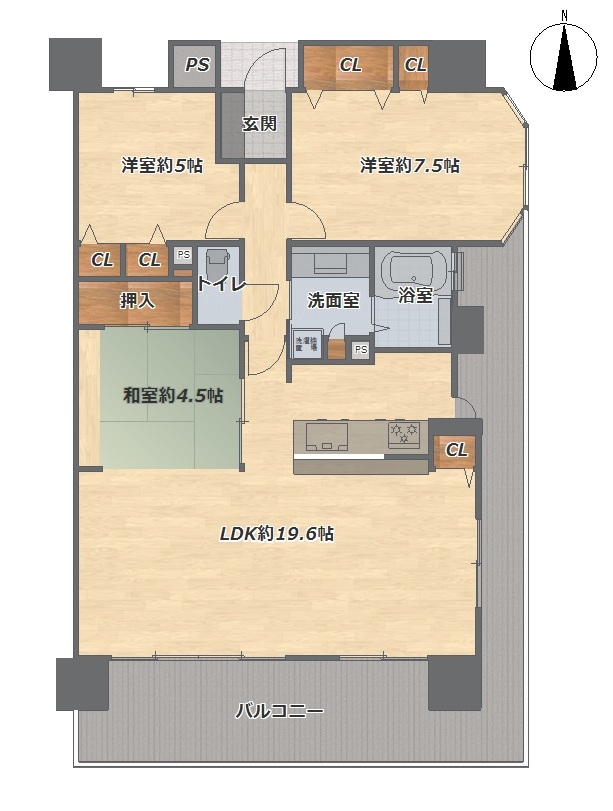 建物面積 75.66㎡ 壁心 / 間取り 2SLDK- 物件番号