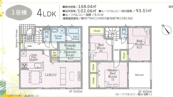 土地面積 168.04㎡(50.83坪) / 建物面積 93.55㎡ / 間取り 4LDK