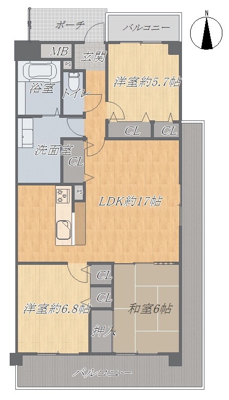 建物面積 74.40㎡ 壁心 / 間取り 3LDK- 物件番号