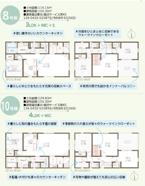 土地面積 114.15㎡(34.53坪) / 建物面積 105.30㎡ / 間取り 3LDK