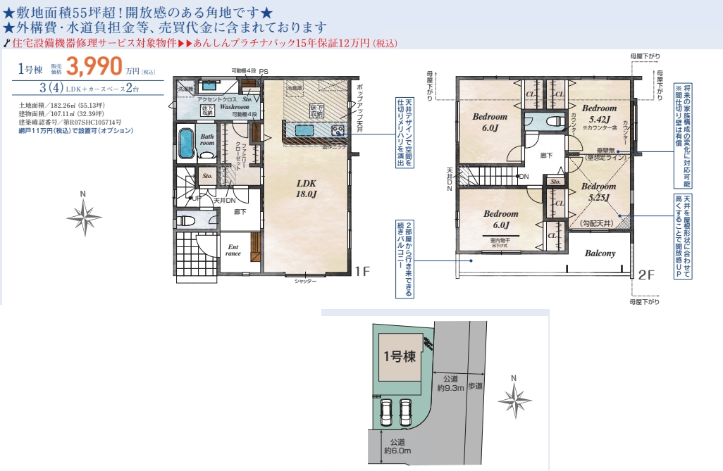 土地面積 182.26㎡ / 建物面積 107.11㎡ / 間取り 3LDK