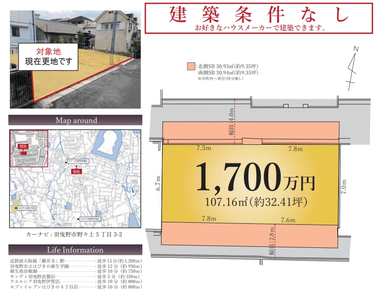 大阪府羽曳野市野々上5丁目土地の不動産情報です。