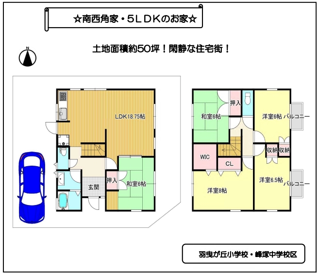 土地面積 168.02㎡ / 建物面積 119.50㎡ / 間取り 5LDK