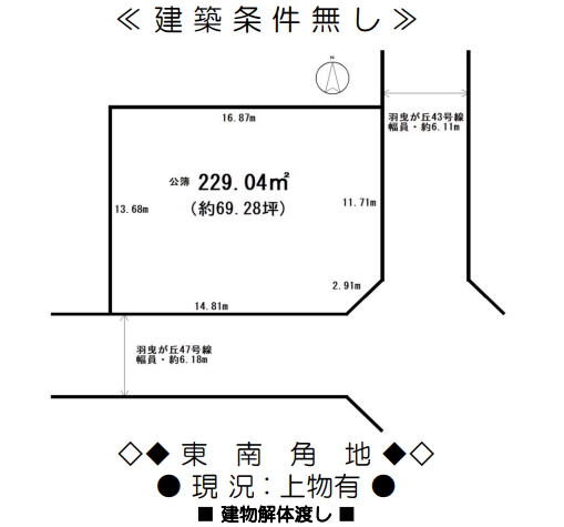 - 建築条件無し売り土地です。
