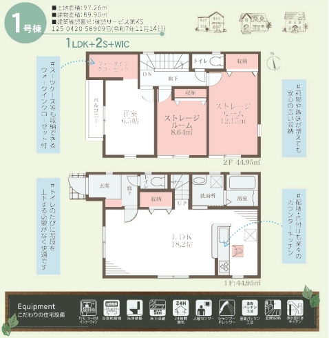 土地面積 97.26㎡ / 建物面積 89.90㎡ / 間取り 1SLDK