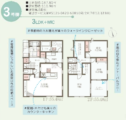 土地面積 167.84㎡ / 建物面積 110.96㎡ / 間取り 3LDK