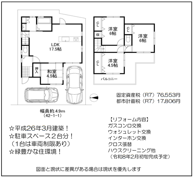 - 駐車2台可能です(車種制限あり)